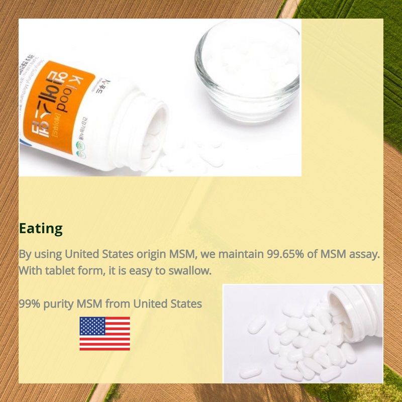 K Food MSM is a meticulously processed methylsulfonylmethane, achieving a purity level of 99.9%. Its white, odorless crystalline form is ideally suited for integration into food supplements and functional foods. Manufactured and packed in South Korea, K Food MSM maintains consistent quality, ensuring optimal benefits and safety for consumers.